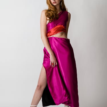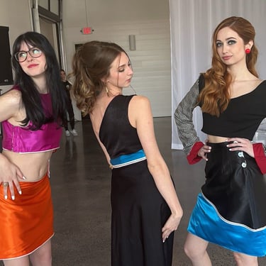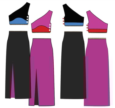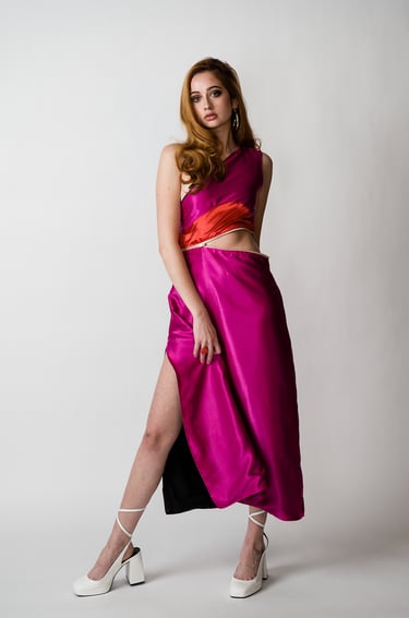 While first researching reversible garments as a potential topic I immediately noticed that the majority of reversible or convertible were casual, or sportswear, typically in subdued and practical colors. I saw the lack of bold, exciting, reversible colors and truly convertible occasionwear, and it inspired to design pieces with both.