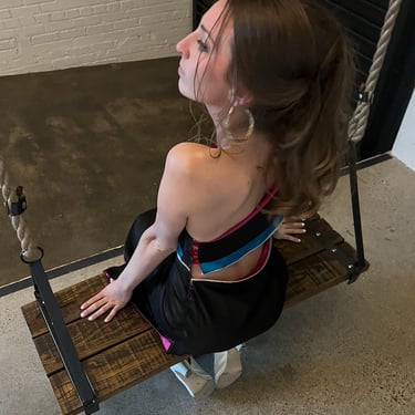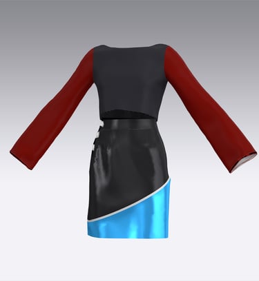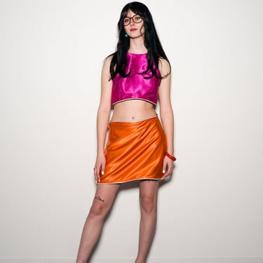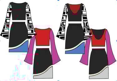 Every piece in the line is fully reversible, with skirts that can be styled alone or paired with either compatible zippered top. The two main skirt pieces also feature detachable bottom panels, allowing the wearer to choose between a longer color-blocked look or a simple mini silhouette.