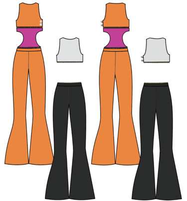 Beginning sketches of silhouette, color blocking, and modular construction. Technical flats lay out each colorway in the line and show how each piece separates.