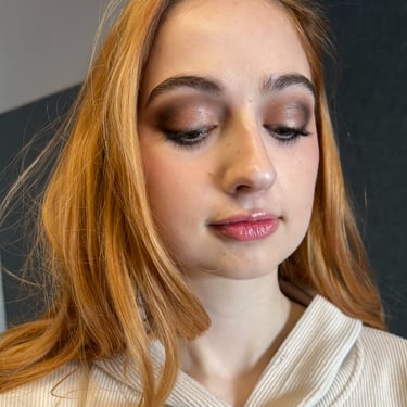 Final photoshoot of Look 1, and images from the final runway show. Styling and makeup by the designer.