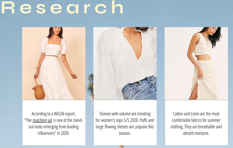 Apparel Design studio one final. Trend research and inspiration, design criteria and process, and execution of a three piece look.